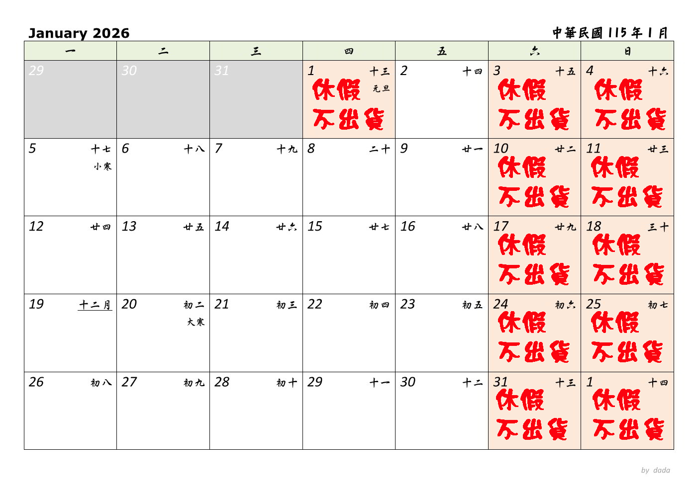 2026年1-2月休假通知